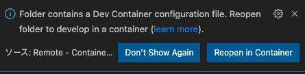 Reopen in Containerを選択し、完成するまで待つ- フォルダ内に